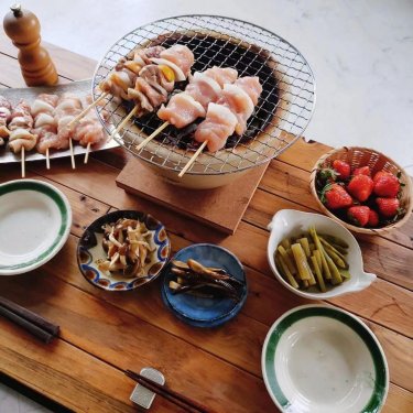 美呗炸鸡将鸡肉的不同部位串成一串烧烤,再于正中间会串上「金桔」是一大特征。